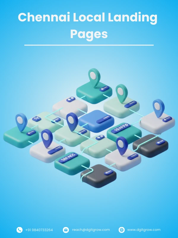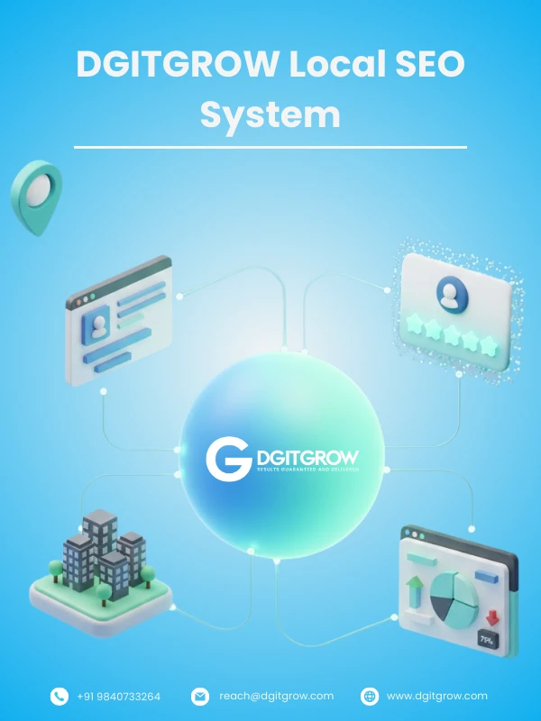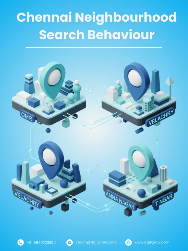 DGITGROW uses a Chennai-first SEO strategy that blends neighbourhood behaviour, reputation signals, structured content, Google Business optimisation, local landing pages, and behavioural insights.